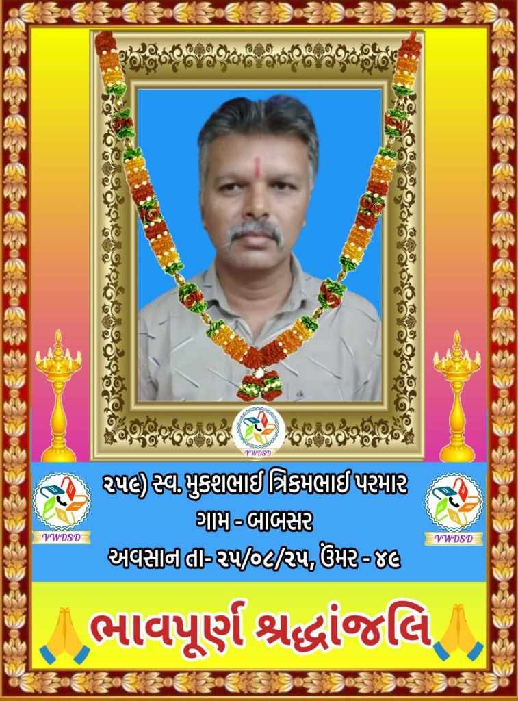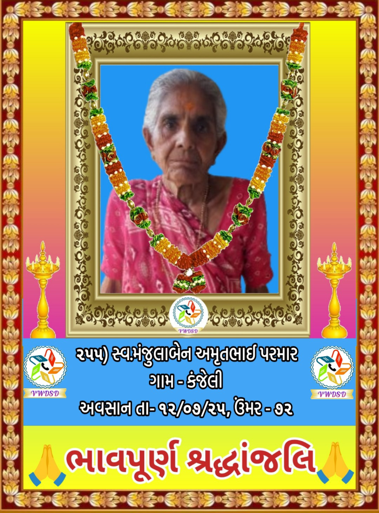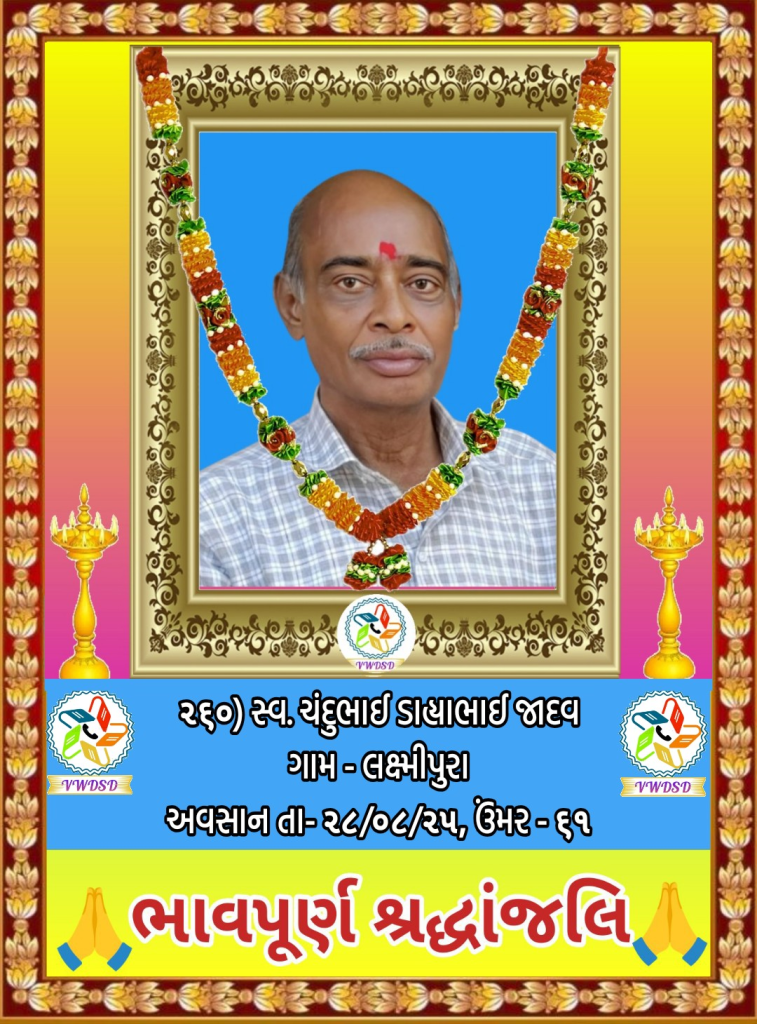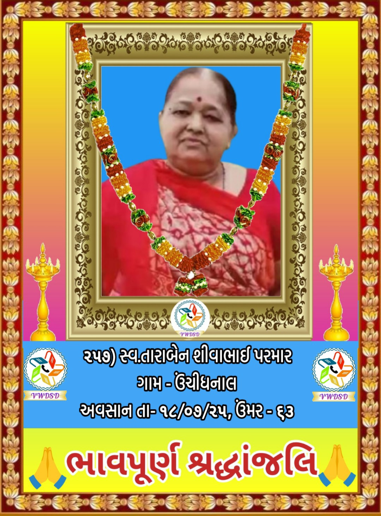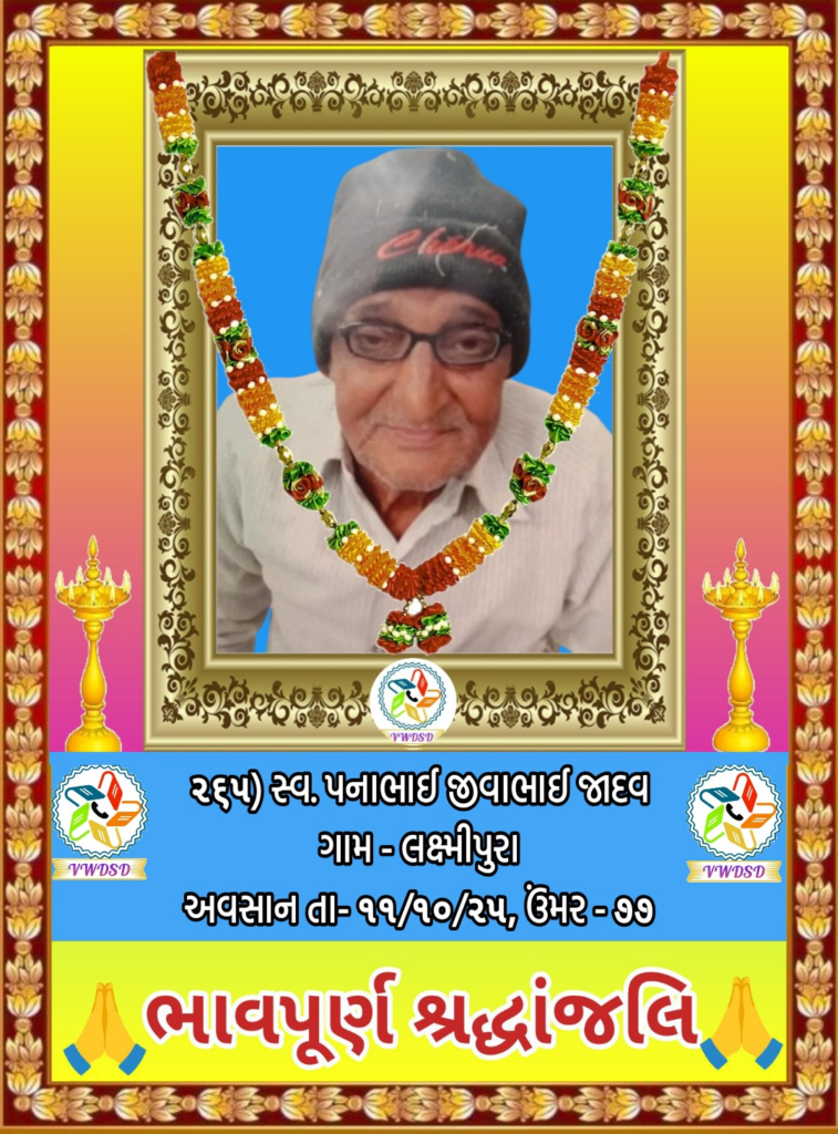 અવસાન નોંધ ૨૧૧ થી ૨૩૫ નંબર સુધીના તા-૨૮/૫/૨૪ થી ૨૩/૧૨/૨૪ સુધીના અવસાન ફોટોની યાદી માટે અહીં ક્લિક કરશો. ૧૮૧ થી ૨૧૦ નંબર સુધીના તા-૧૫/૯/૨૩ થી ૧૮/૫/૨૪ સુધીના અવસાન ફોટોની યાદી માટે અહીં ક્લિક કરશો. ૧૫૧ થી ૧૮૦ નંબર સુધીના તા-૨/૧૨/૨૨ થી ૧૩/૯/૨૩ સુધીના અવસાન ફોટોની યાદી માટે અહીં ક્લિક કરશો. ૧૨૧ થી ૧૫૦ નંબર સુધીના તા-૨૨/૨/૨૨ થી ૨૫/૧૧/૨૨ સુધીના અવસાન ફોટોની યાદી માટે અહીં ક્લિક કરશો. ૯૧ થી ૧૨૦ નંબર સુધીના તા-૨/૭/૨૧ થી ૨૨/૨/૨૨ સુધીના અવસાન ફોટોની યાદી માટે અહીં ક્લિક કરશો. ૬૧ થી ૯૦ નંબર સુધીના તા-૯/૪/૨૧ થી ૨૯/૬/૨૧ સુધીના અવસાન ફોટોની યાદી માટે અહીં ક્લિક કરશો. ૩૧ થી ૬૦ નંબર સુધીના તા-૮/૯/૨૦ થી ૫/૪/૨૧ સુધીના અવસાન ફોટોની યાદી માટે અહીં ક્લિક કરશો. ૧ થી ૩૦ નંબર સુધીના તા-૯/૩/૨૦ થી ૮/૯/૨૦ સુધીના અવસાન ફોટોની યાદી માટે અહીં ક્લિક કરશો.