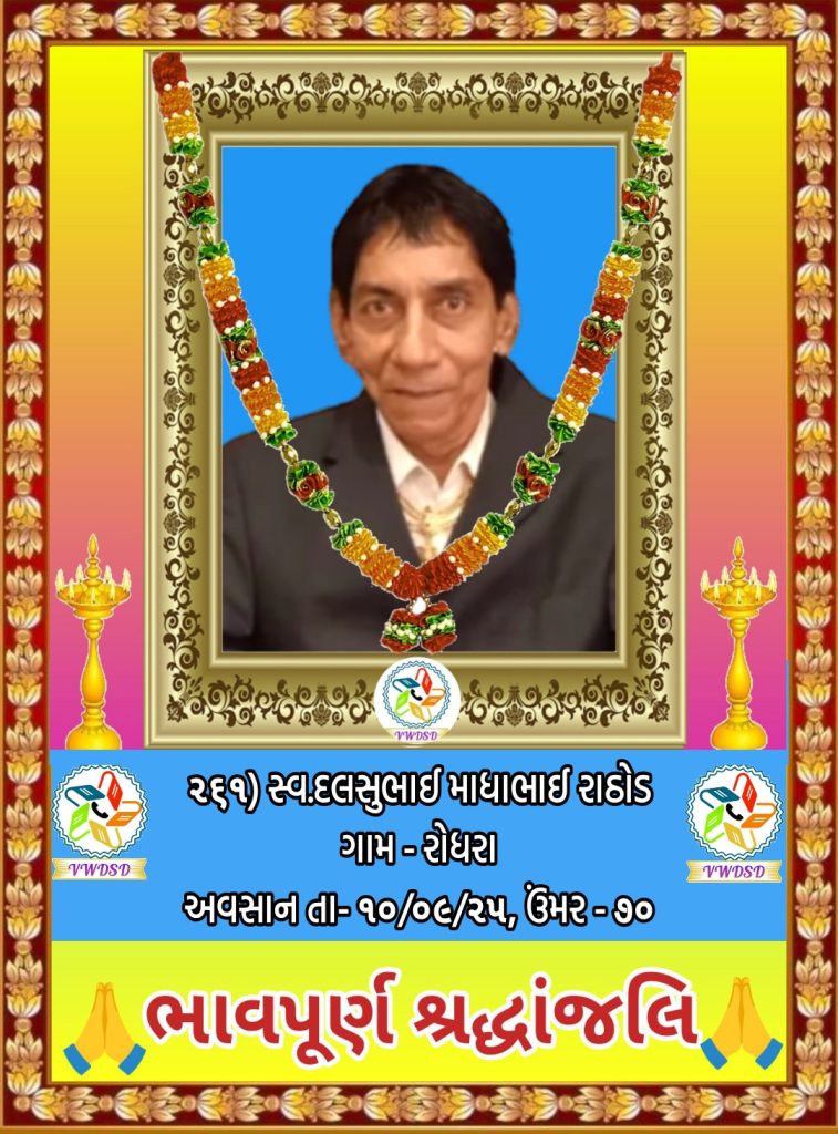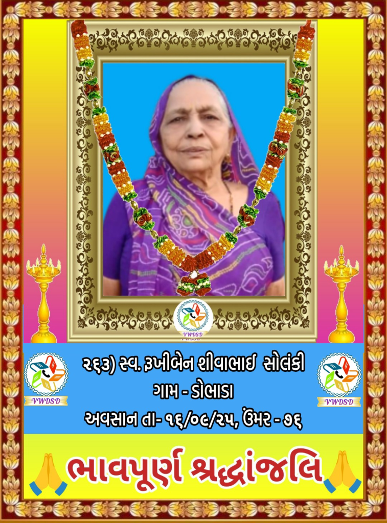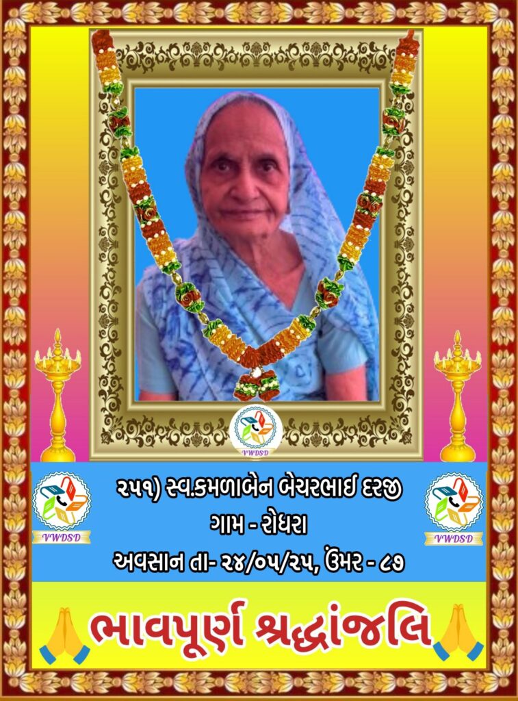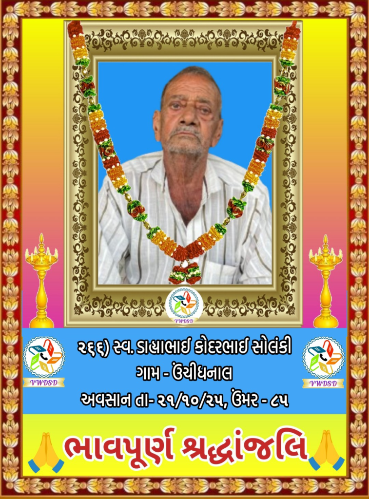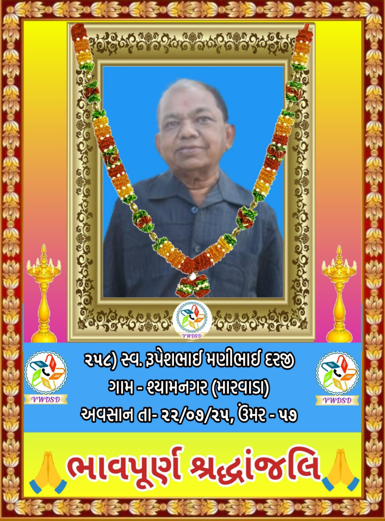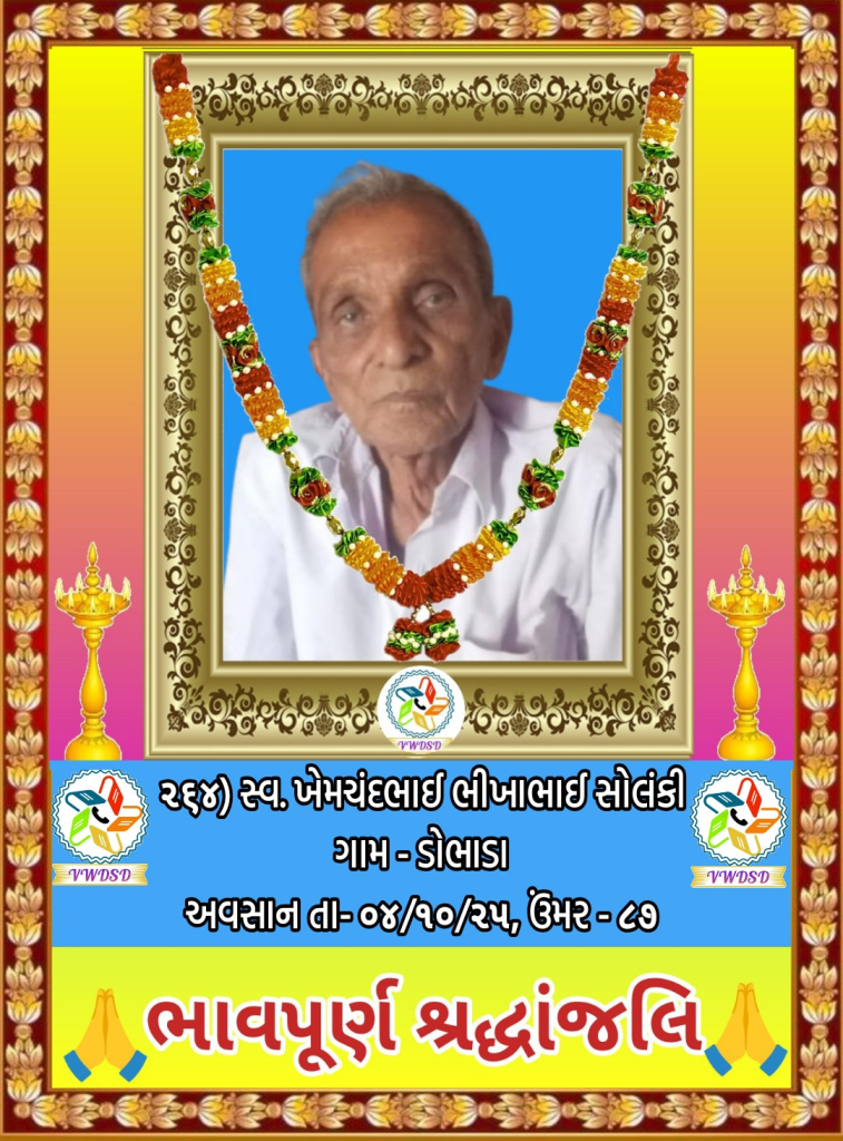 અવસાન નોંધ ૨૧૧ થી ૨૩૫ નંબર સુધીના તા-૨૮/૫/૨૪ થી ૨૩/૧૨/૨૪ સુધીના અવસાન ફોટોની યાદી માટે અહીં ક્લિક કરશો. ૧૮૧ થી ૨૧૦ નંબર સુધીના તા-૧૫/૯/૨૩ થી ૧૮/૫/૨૪ સુધીના અવસાન ફોટોની યાદી માટે અહીં ક્લિક કરશો. ૧૫૧ થી ૧૮૦ નંબર સુધીના તા-૨/૧૨/૨૨ થી ૧૩/૯/૨૩ સુધીના અવસાન ફોટોની યાદી માટે અહીં ક્લિક કરશો. ૧૨૧ થી ૧૫૦ નંબર સુધીના તા-૨૨/૨/૨૨ થી ૨૫/૧૧/૨૨ સુધીના અવસાન ફોટોની યાદી માટે અહીં ક્લિક કરશો. ૯૧ થી ૧૨૦ નંબર સુધીના તા-૨/૭/૨૧ થી ૨૨/૨/૨૨ સુધીના અવસાન ફોટોની યાદી માટે અહીં ક્લિક કરશો. ૬૧ થી ૯૦ નંબર સુધીના તા-૯/૪/૨૧ થી ૨૯/૬/૨૧ સુધીના અવસાન ફોટોની યાદી માટે અહીં ક્લિક કરશો. ૩૧ થી ૬૦ નંબર સુધીના તા-૮/૯/૨૦ થી ૫/૪/૨૧ સુધીના અવસાન ફોટોની યાદી માટે અહીં ક્લિક કરશો. ૧ થી ૩૦ નંબર સુધીના તા-૯/૩/૨૦ થી ૮/૯/૨૦ સુધીના અવસાન ફોટોની યાદી માટે અહીં ક્લિક કરશો.