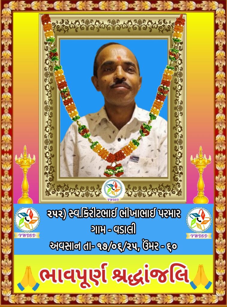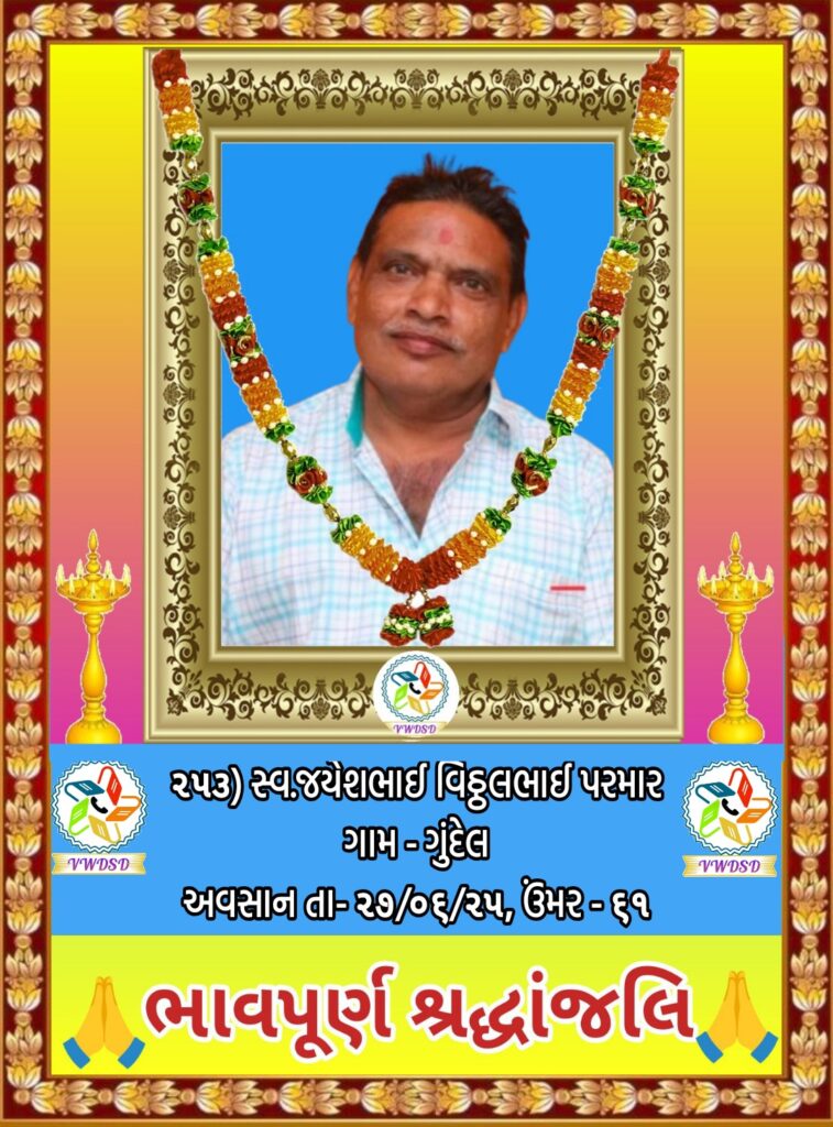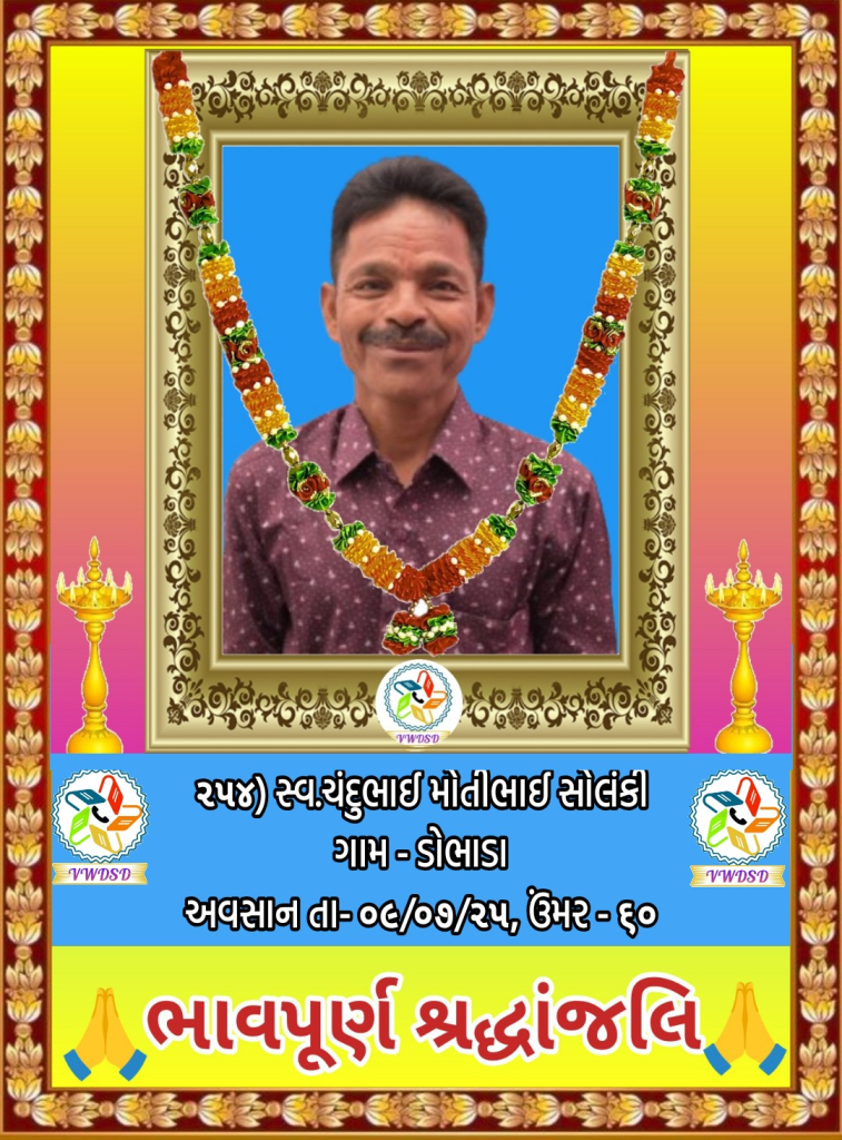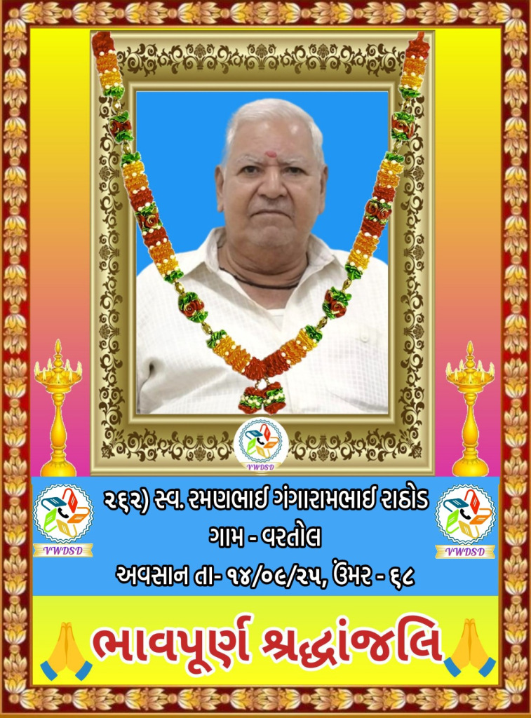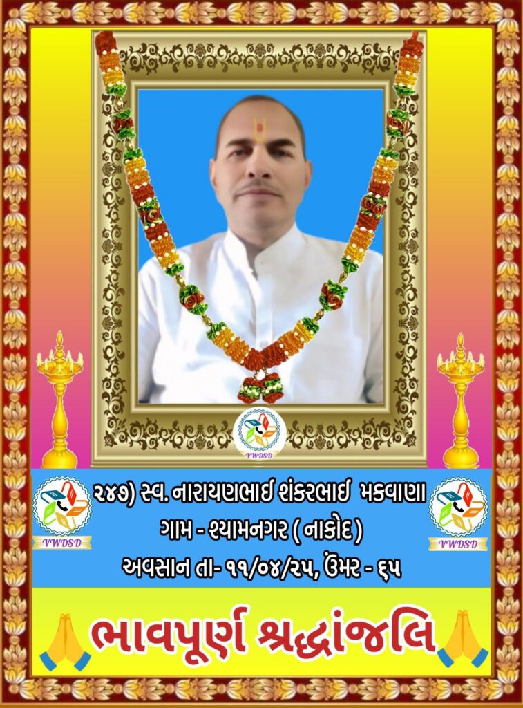 અવસાન નોંધ ૨૧૧ થી ૨૩૫ નંબર સુધીના તા-૨૮/૫/૨૪ થી ૨૩/૧૨/૨૪ સુધીના અવસાન ફોટોની યાદી માટે અહીં ક્લિક કરશો. ૧૮૧ થી ૨૧૦ નંબર સુધીના તા-૧૫/૯/૨૩ થી ૧૮/૫/૨૪ સુધીના અવસાન ફોટોની યાદી માટે અહીં ક્લિક કરશો. ૧૫૧ થી ૧૮૦ નંબર સુધીના તા-૨/૧૨/૨૨ થી ૧૩/૯/૨૩ સુધીના અવસાન ફોટોની યાદી માટે અહીં ક્લિક કરશો. ૧૨૧ થી ૧૫૦ નંબર સુધીના તા-૨૨/૨/૨૨ થી ૨૫/૧૧/૨૨ સુધીના અવસાન ફોટોની યાદી માટે અહીં ક્લિક કરશો. ૯૧ થી ૧૨૦ નંબર સુધીના તા-૨/૭/૨૧ થી ૨૨/૨/૨૨ સુધીના અવસાન ફોટોની યાદી માટે અહીં ક્લિક કરશો. ૬૧ થી ૯૦ નંબર સુધીના તા-૯/૪/૨૧ થી ૨૯/૬/૨૧ સુધીના અવસાન ફોટોની યાદી માટે અહીં ક્લિક કરશો. ૩૧ થી ૬૦ નંબર સુધીના તા-૮/૯/૨૦ થી ૫/૪/૨૧ સુધીના અવસાન ફોટોની યાદી માટે અહીં ક્લિક કરશો. ૧ થી ૩૦ નંબર સુધીના તા-૯/૩/૨૦ થી ૮/૯/૨૦ સુધીના અવસાન ફોટોની યાદી માટે અહીં ક્લિક કરશો.